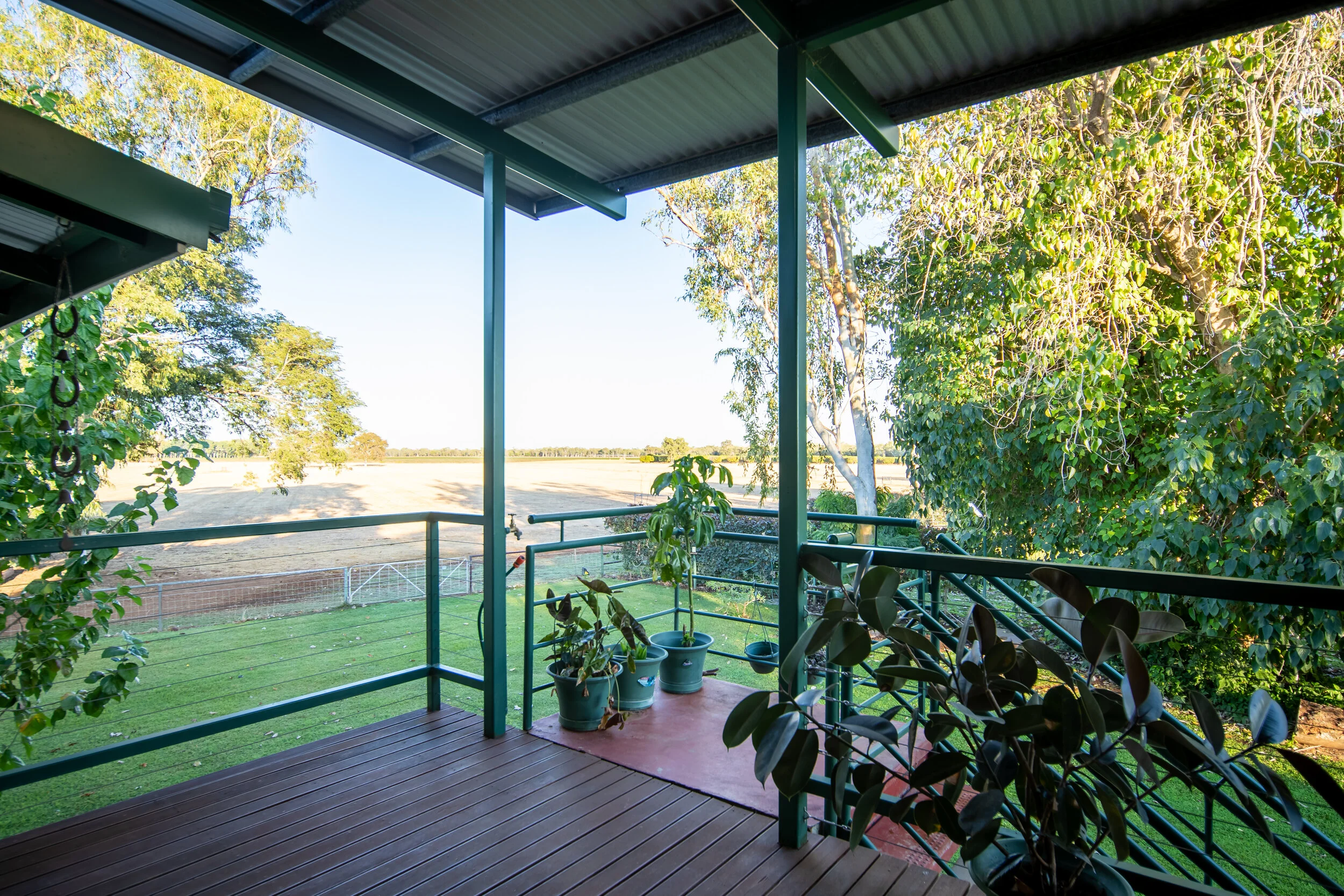 Freshly painted high set homestead with three generous sized bedrooms and a newly renovated kitchen and spacious modern bathroom with overhead fan. High set ceiling and louvers allows air flow through the house, and all bedrooms have sliding glass entrances onto the verandah that overlooks gardens and paddocks. All windows and external bedroom doors have insect screens, and verandah has overhead fans. Polished timber floors, air-conditioning and plenty of natural light throughout. Additional downstairs kitchen, bathroom, laundry and toilet, and generous undercover area, ideal for entertaining. Beautiful established gardens and sprawling lawn area with automated reticulation.