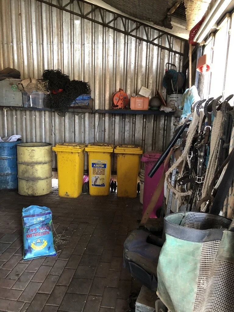 Five horse stables. Steel yards including race, cattle crush and loading ramp. Yards include 100 ft round yard with poly belting - perfect for working horses on cattle or dry work. Overhead flood lights and sprinklers for dust suppression.
